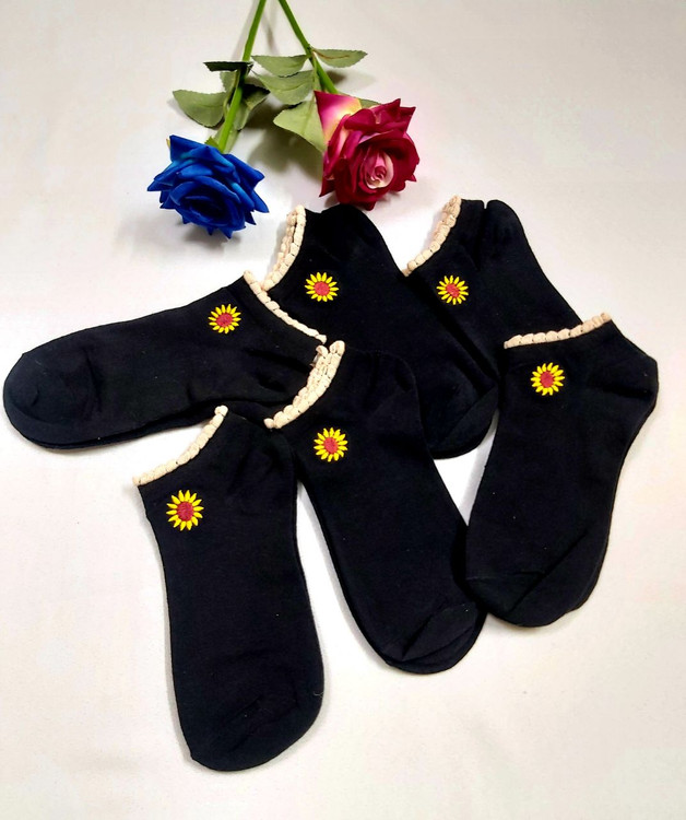 جوراب مچینخ پنبه لبه دالبری با رنگ مشکی و طرح