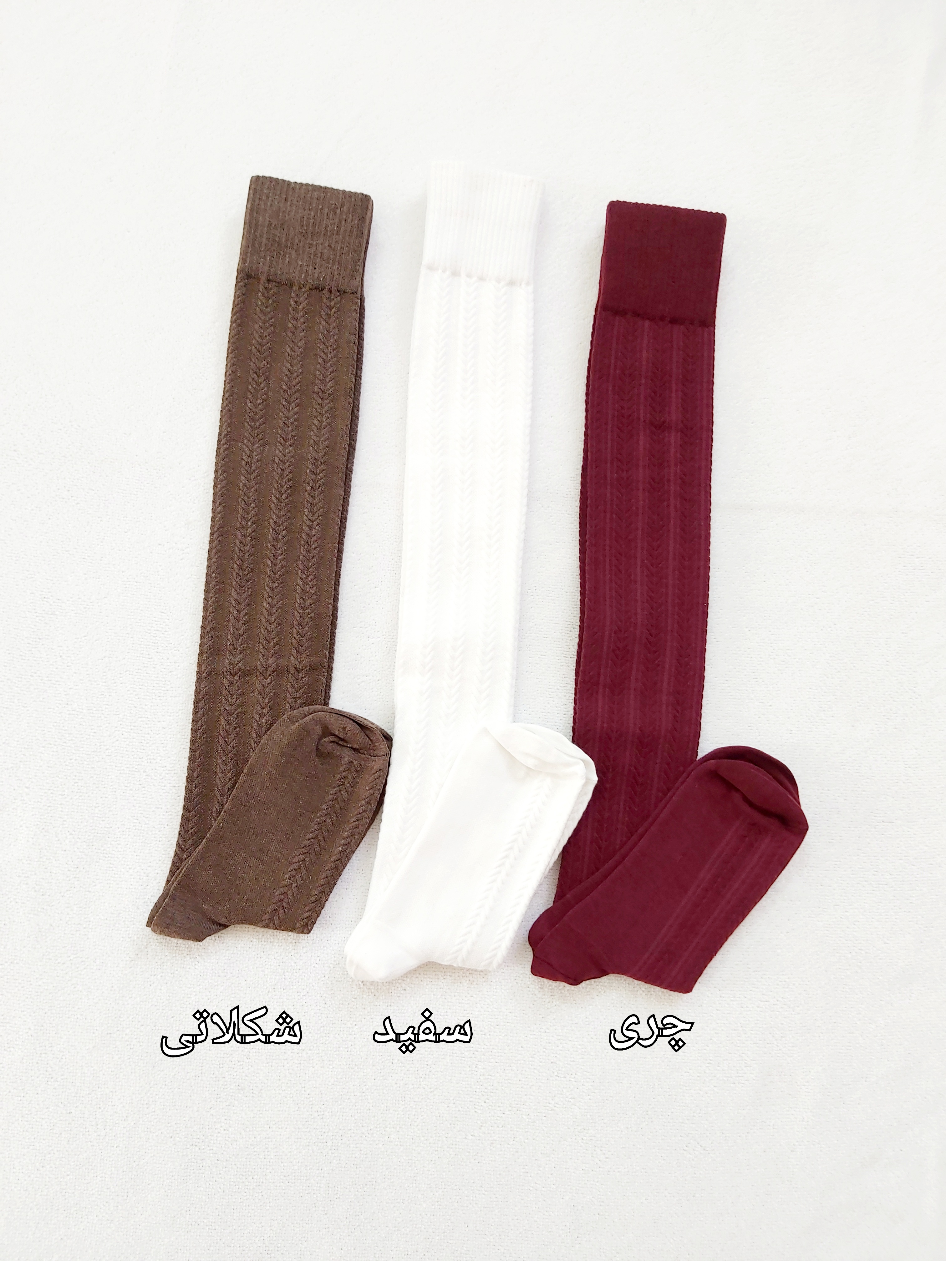 جوراب گندمی بالا زانورنگ زرشکی یلدایی