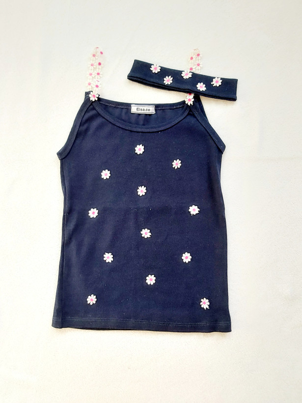 تاپ و هدبند شکوفه رنگ صورمه ای کبریتی پنبه